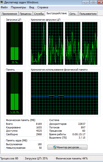 А это график нагрузки процессора, пока писал эту тему