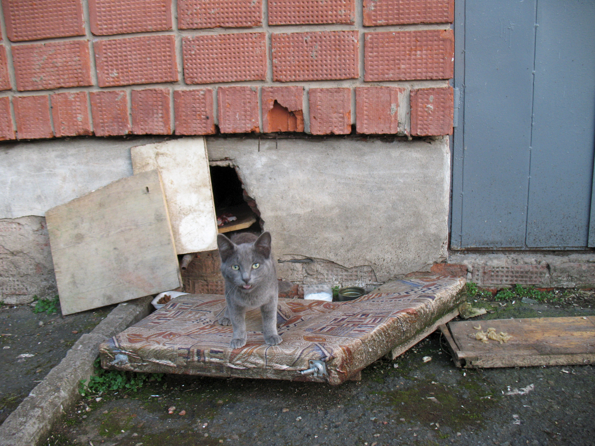 Вот такой красивый молодой котик живет в одном из подвалов нашего города. Не так давно он проживал вместе с братцем, но случилась беда и Васю (так зовут братика) переехали велосипедом. Сердобольная женщина подобрала умирающего котика и теперь всеми силами выхаживает его (перебиты лапки, проведена операция). Так Серый остался один...Он очень тяжело переживает свое одиночество, слезно мяучит, но женщина не может взять его домой. А Серый каждый день с замиранием сердца ждет, что его тоже заберут, и будут любить и лелеять просто так!