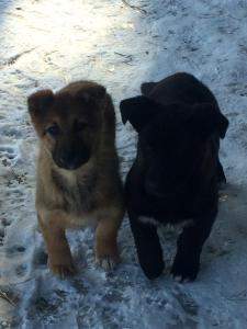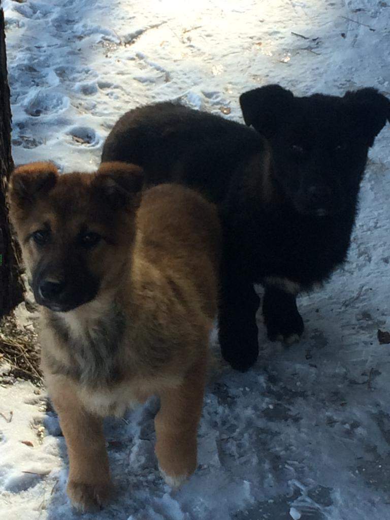 щенки бегают,алабай рычит немного когда еда падает около него,с жадностью сьедает