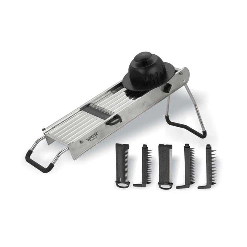 2. Профессиональная терка для овощей <VITESSE> с шестью сменными лезвиями и регулируемой толщиной, со складной нескользящей подставкой - 1400 руб.,