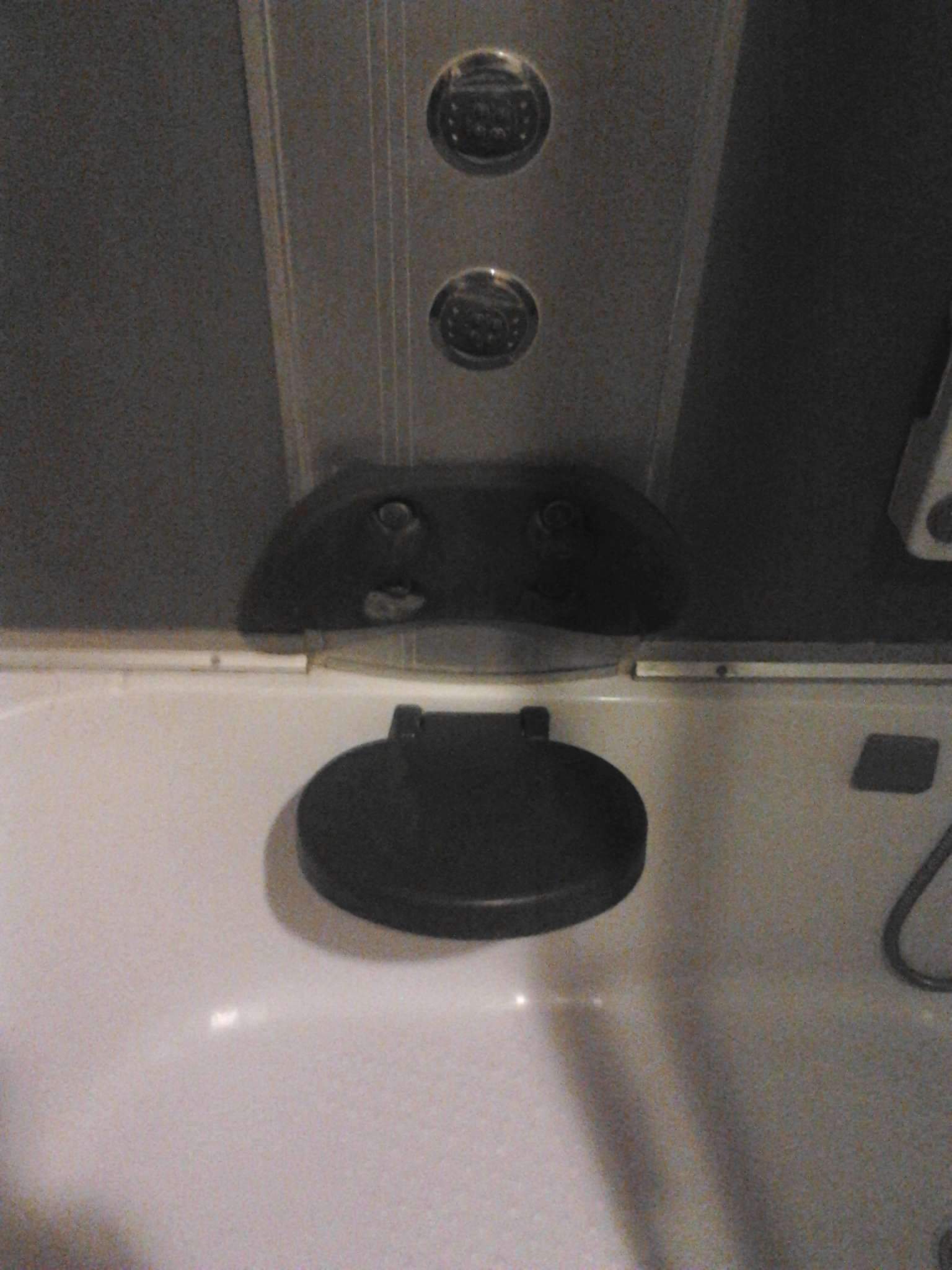 Гидромассаж спины устроен в виде форсунок (джет), гидромассаж ног выполнен в виде специального съемного устройства, акриловая ванна, зеркало, радио, телефон, сидение, подголовник, верхний свет - светодиоды.