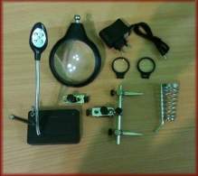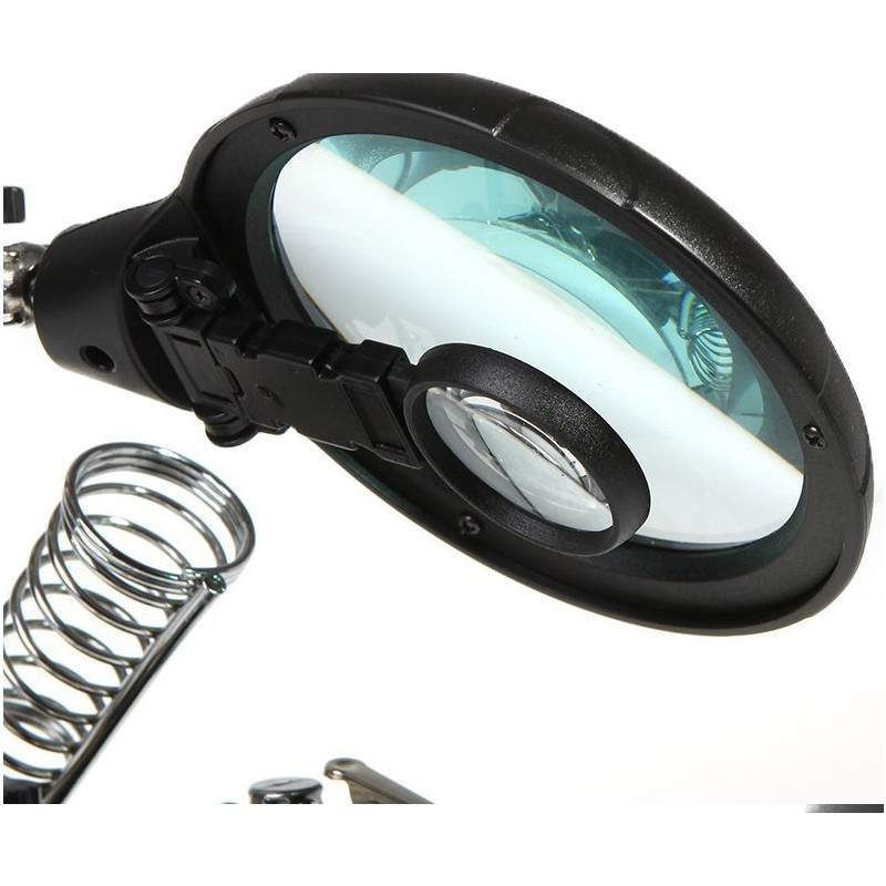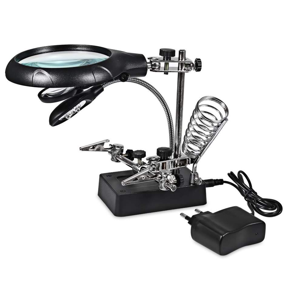 Устойчивый штатив позволяет не придерживать лупу руками. Кроме того, данная модель комплектуется съемными держателями и подставкой для паяльника.