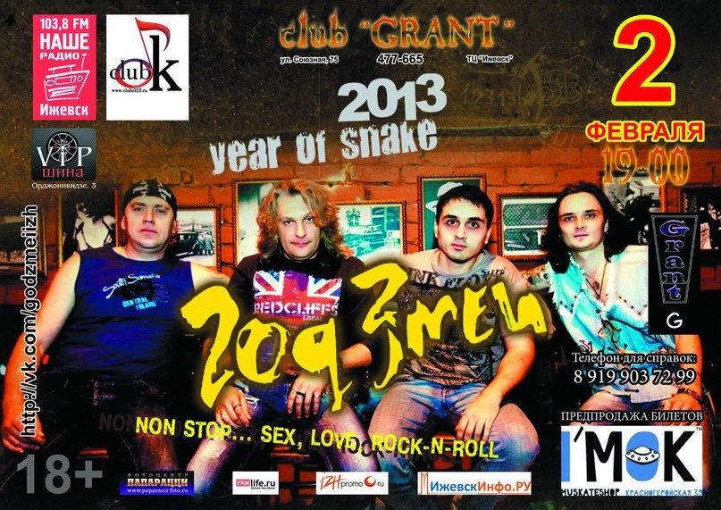 Группа "Год Змеи"/19 января/19-00/клуб "GRANT"/ Первым 50 человек купившие билет- автограф-сессия!!! Вопросы в личку.