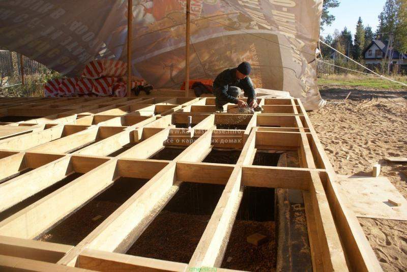 Закрепил второстепенные балки из доски 50х200 с шагом 550-650 мм. Длина балок не более 3,5 м.