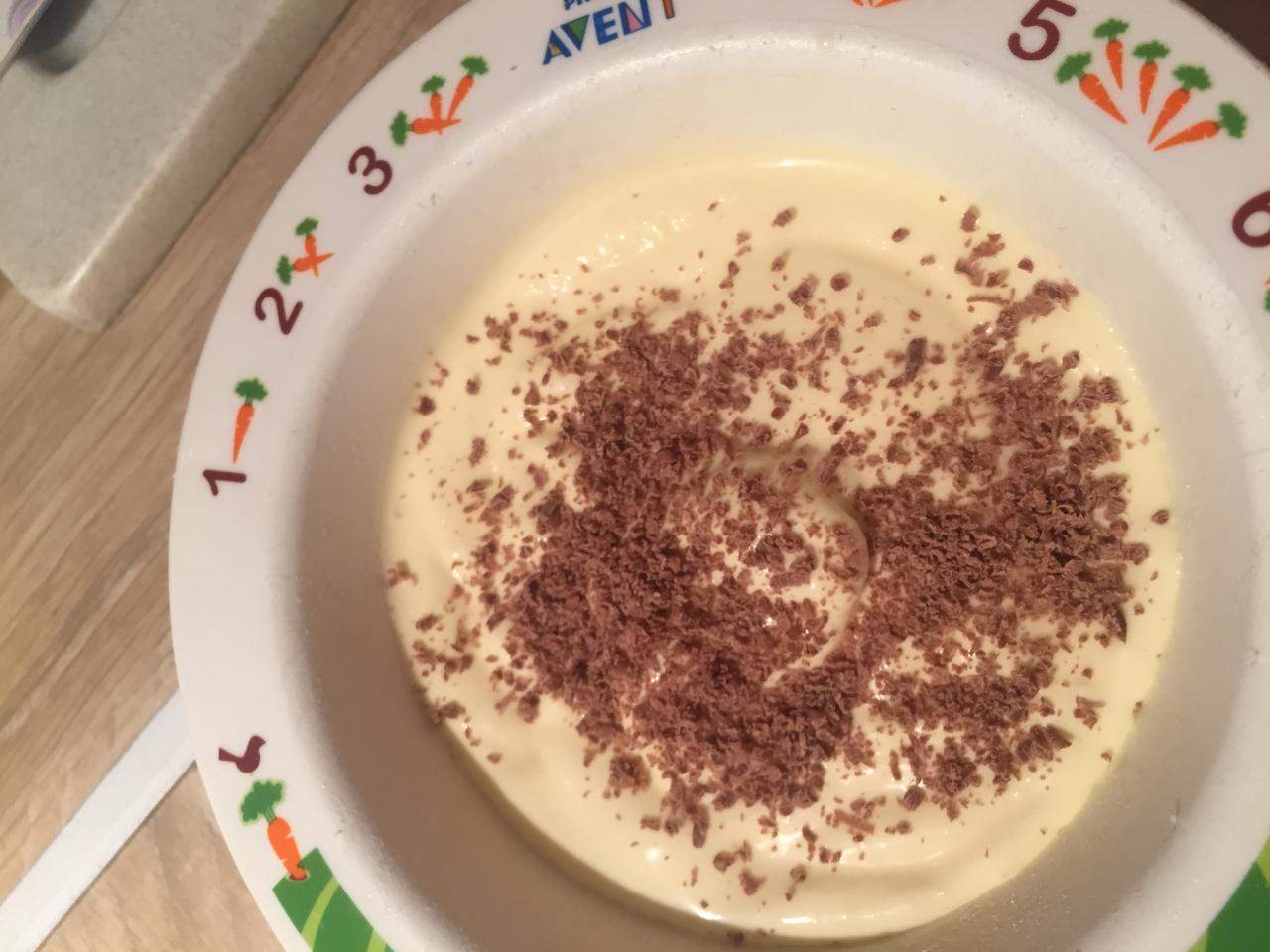 Постоянно помешивая желтки , вливаем по чуть чуть в них молоко,размешиваем до однородной массы.