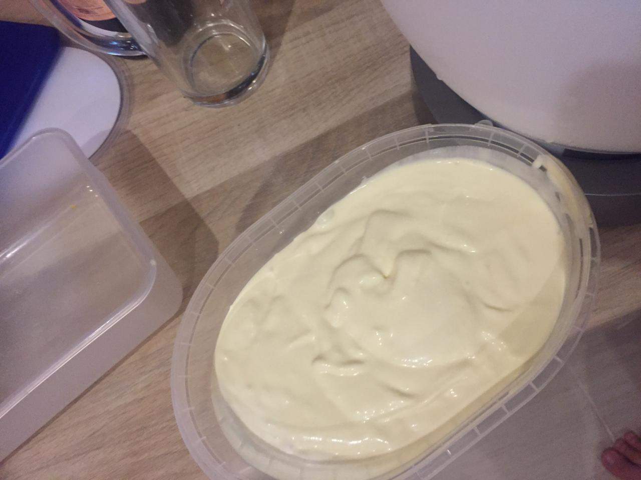 Убираете в морозилку и достаете каждые 30 минут,чтобы перемешать ( это нужно.чтобы мороженое не кристаллизовалось) достаете до тех пор пока не добьётесь нужной консистенции.
