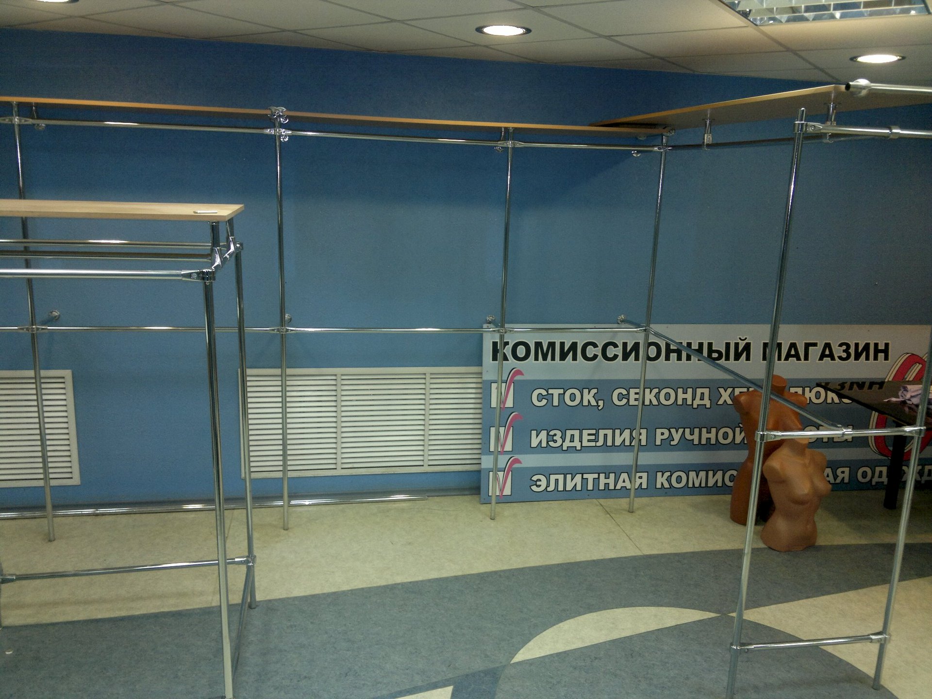 Продам оборудование для магазина одежды: Ресепшн, витрина, пристенная полка, стойки для одежды, плечики, ящики для хранения, манекены.