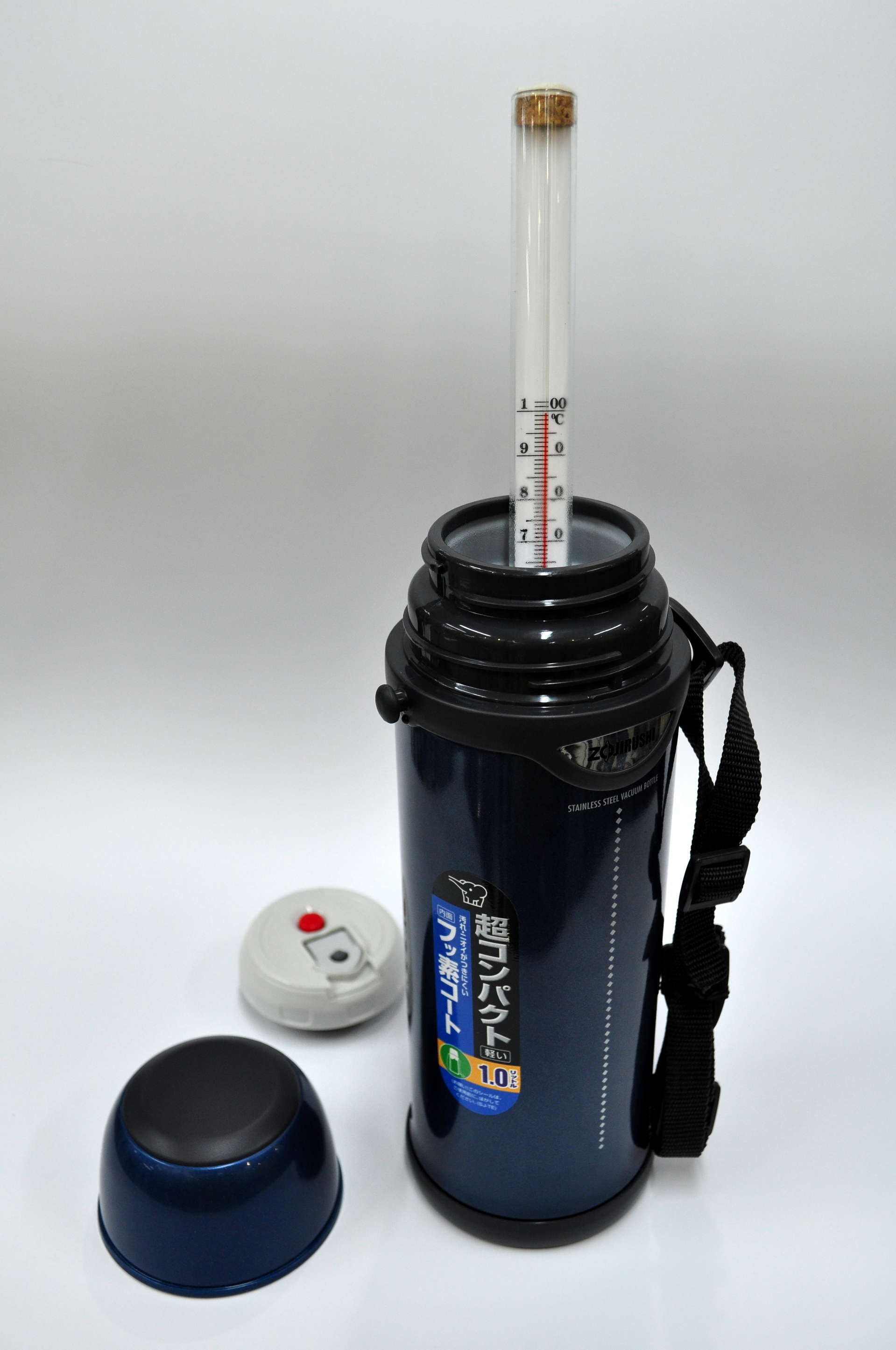Для этого мы залили в термосы кипяток (100.С - поверим термометру).