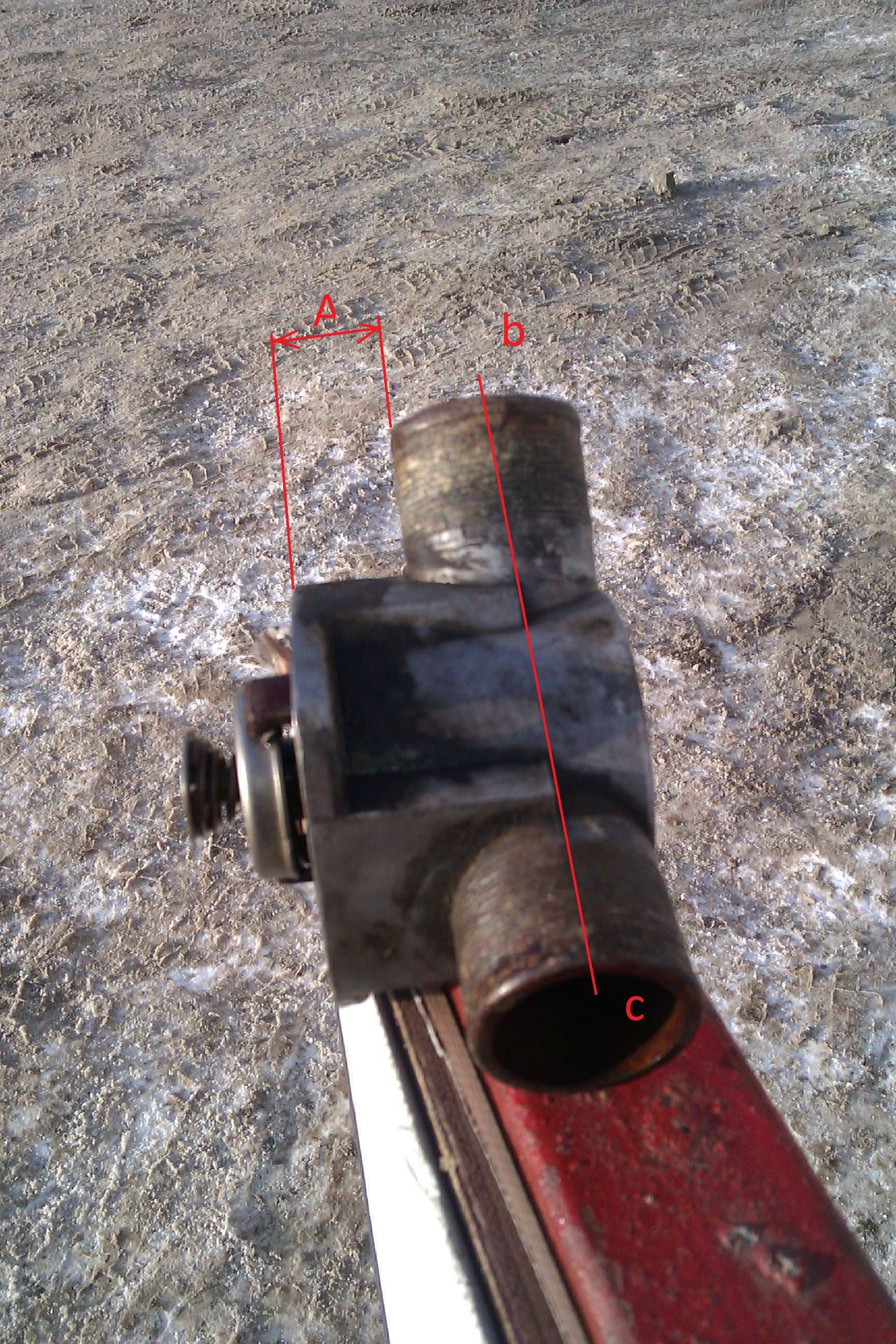Куплю термостат ВАЗ 2110 старого образца. Новый или рабочий б/у. От нового образца он отличается тем, что у него оба патрубка находятся на одной оси (b-c), а у нового образца эти патрабки смещены друг относительно друга. Также размер А у старого термостата около 15 мм, а у нового - около 3-5 мм. Из-за этого новый вместо старого не встает!