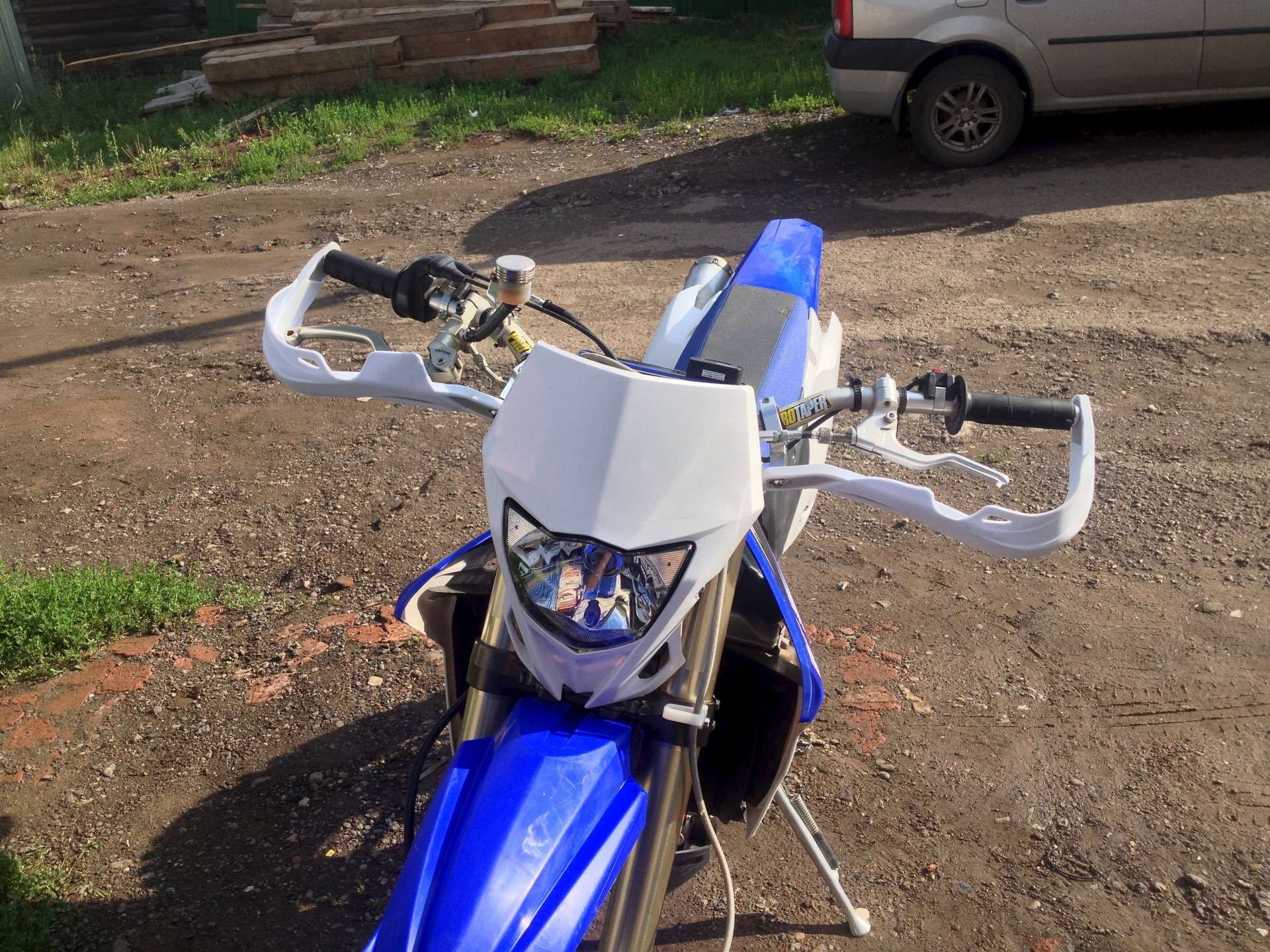 Мотоцикл ухожен. Я бы сказал вылезан. Замена масла каждые 1000 км. Ездили мало, в основном на заднем. Рычаги сцепления и тормоза не родные , а еще лучше.