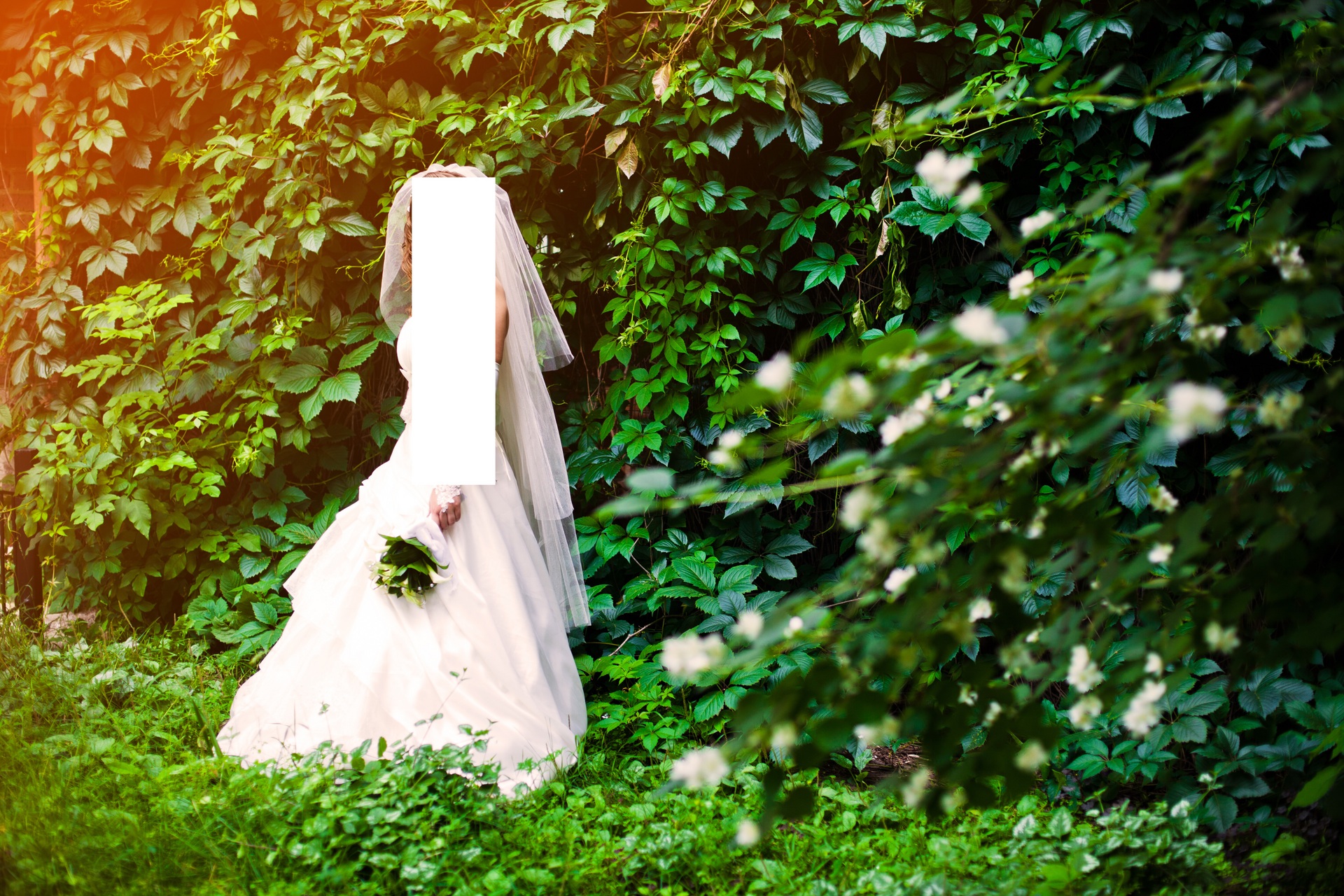 на фото у меня голова повернута в сторону, а то может показаться , что фата сбоку))