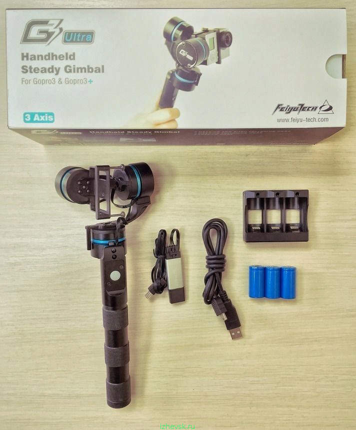 Стедикам FeiYu FY-G3 Ultra Handheld Gimbal 3x с трехосевой системой стабилизации приятно удивит фанатов создания видеороликов на экшн камеру GoPro HERO 3/4 своими возможностями. Три гироскопических датчика позволяют исключить все колебания камеры при активной видеосъемке. Кронштейн крепления предусматривает простую и надежную установку любой камеры GoPro Hero серии 3, 3 плюс или 4 без водонепроницаемого корпуса. Помимо GoPro можно установить камеры других производителей -AEE, SJCAM, XIAOMI